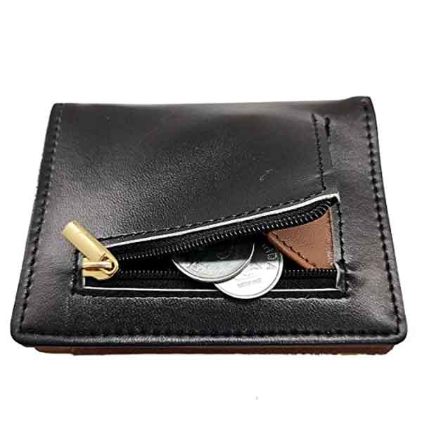 The small wallets is finished with neat and functional leatherette interiors. It comes with 6 debit/credit card slots, 1 full-length compartment for cash and 1 separate coin pouch with zipper closure; Perfect size to fit indian currency.